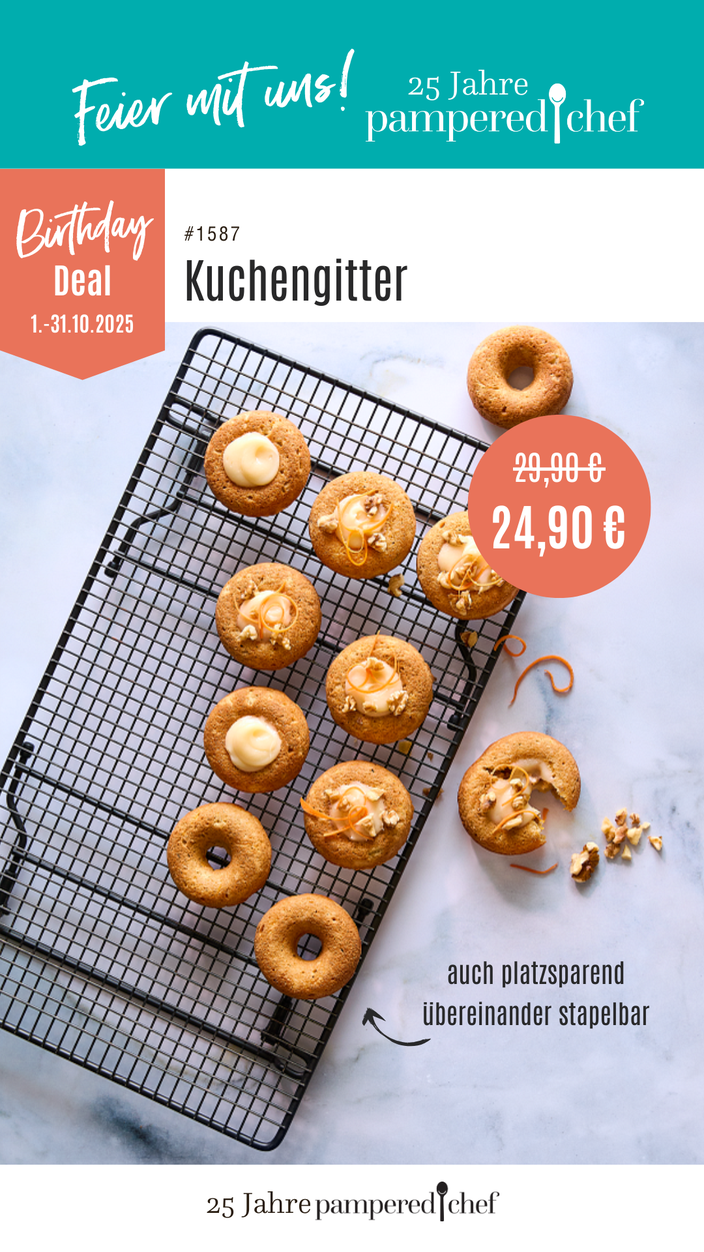 Das beliebte Kuchengitter gleich zur White Lady mit bestellen und bis zum 10. Oktober den Teigroller, im Wert von 34,90€ gratis dazu bekommen.